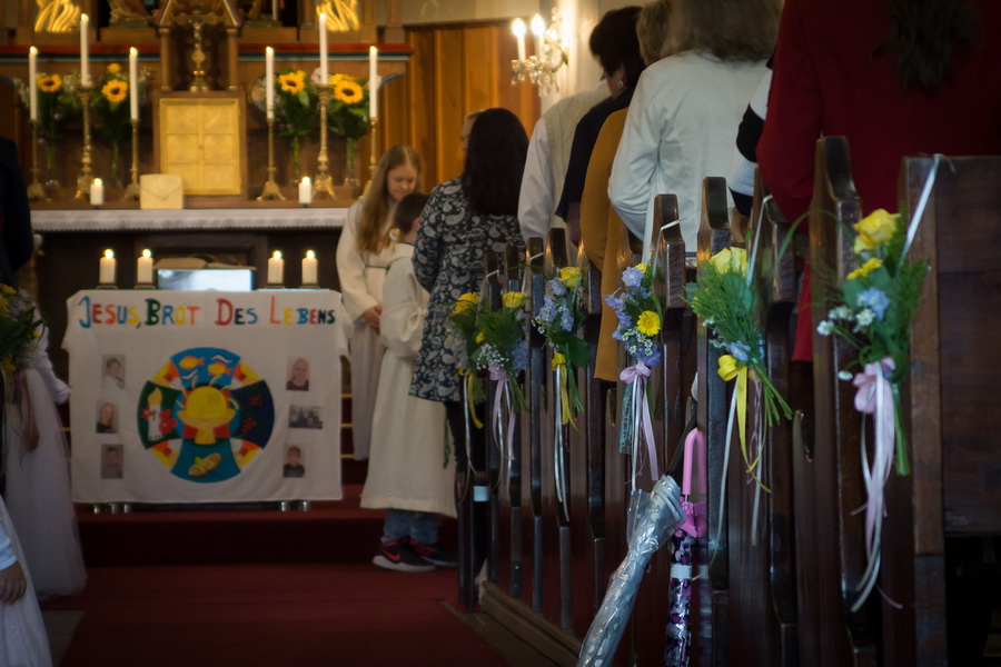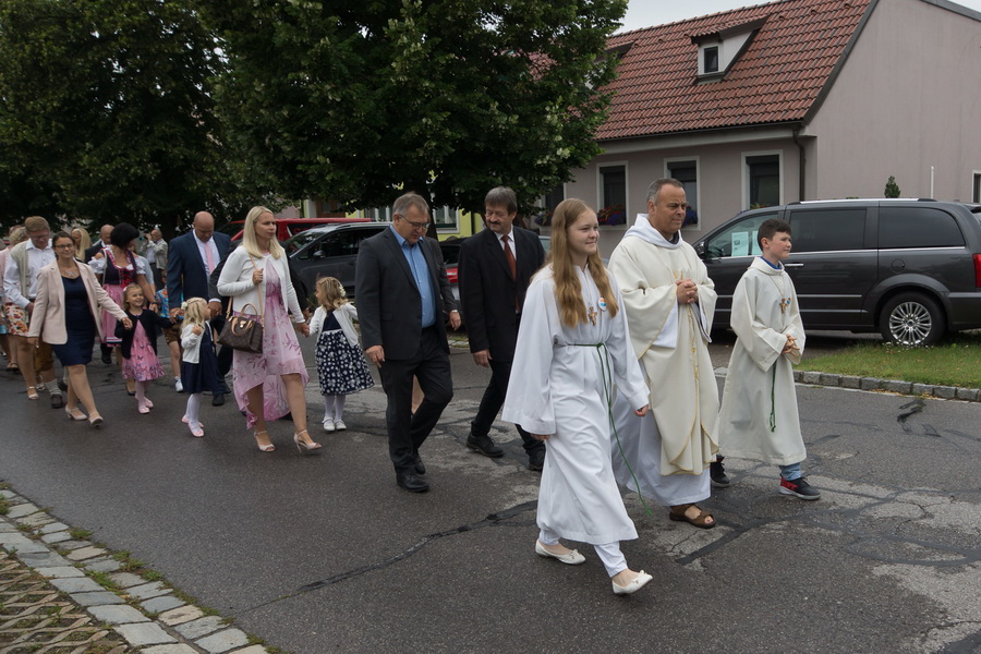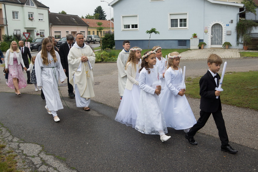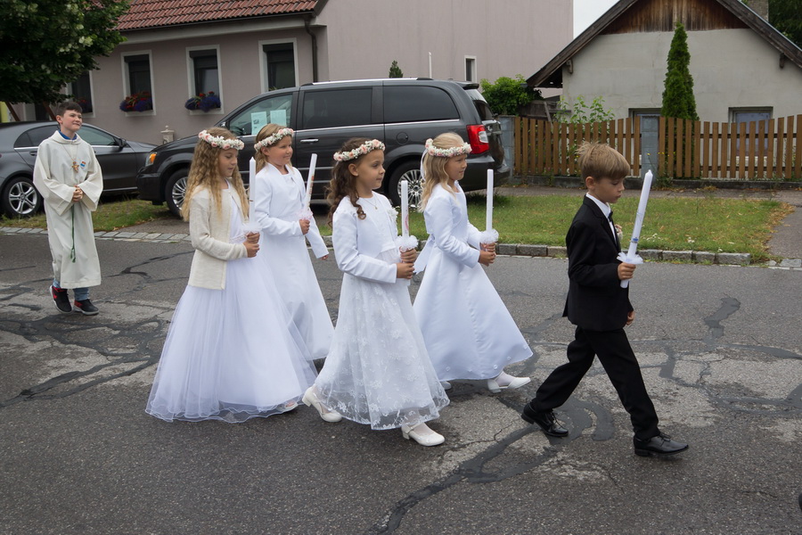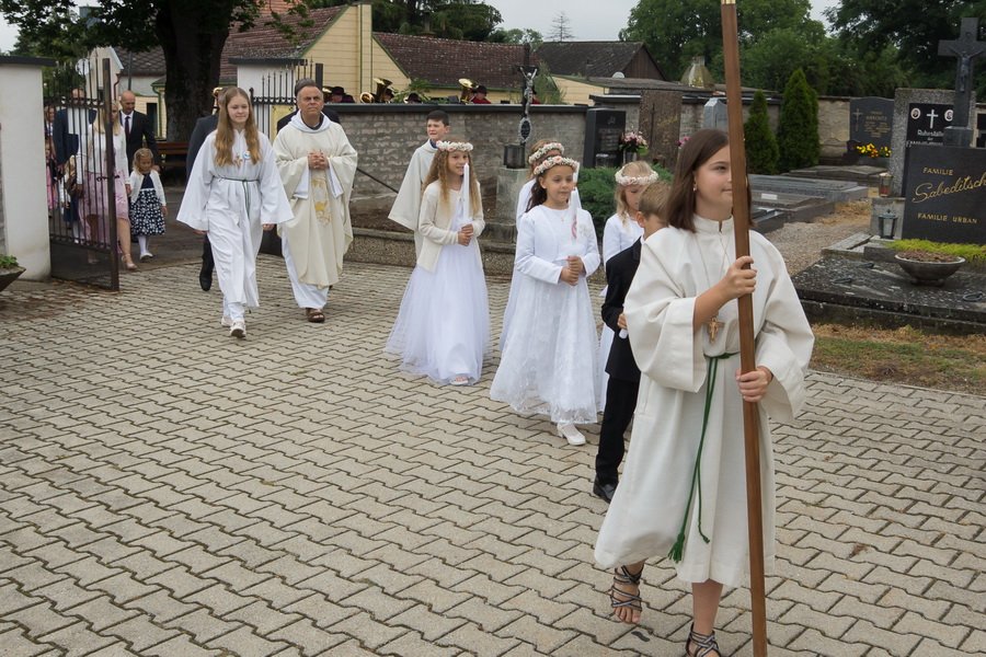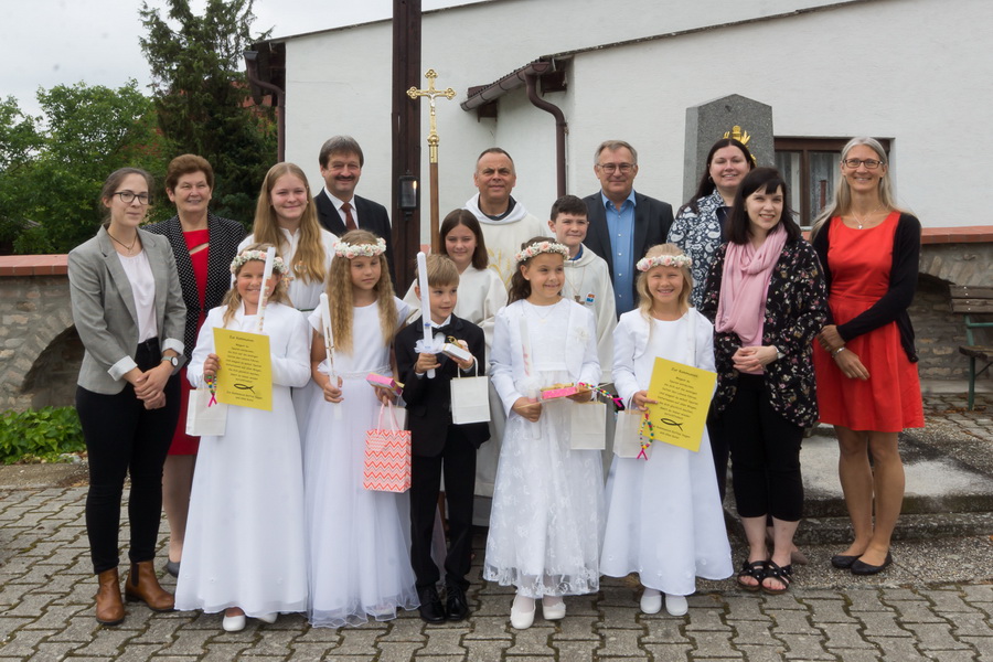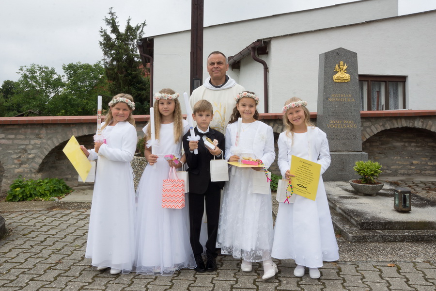 4 Mädels und ein Bub feierten ihre Erstkommunion mit ihren Angehörigen und der Pfarrgemeinde. Der MV Marchegg/Breitensee und der Kirchenchor von Breitensee untermalte die feierliche Messe.