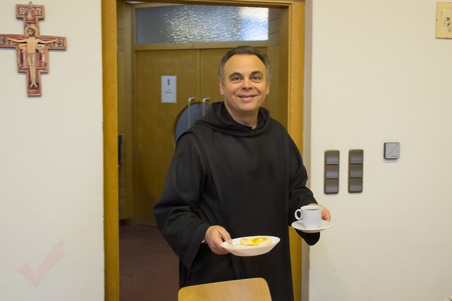 Anläßlich der Vikariatsvisitation in Marchegg lud Pater Antal zum Frühstück mit Weihbischof Turnovszky ein.